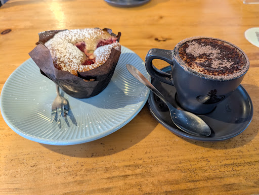 Coffee: I tried the cappucino (in the photo) along with a muffin. But I was also seeing / hearby nearby tourist's appreciation of their other coffees. The cappucino was outstanding. Extra hot (which went really well with a rainy morning) along with the abundantly sprinkled cocoa powder.