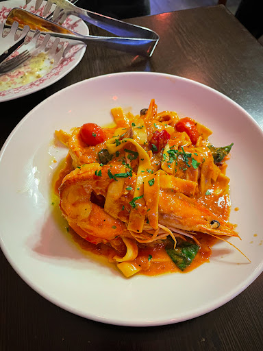 • Tagliatelle gamberi e pomodorini 3.5/5 ⭐️ It’s more to prawn with pasta instead of pasta with prawn for me. As you can see how big the prawns in the picture 🥹🤌🏻 it taste pretty tasty but just not that wow for us. For me, the sauce is just too sweet which is made this pasta become so sweet & also considering the amount of tagliatelle really small