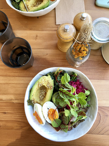 Location is amazing, Staff were pretty average with service. Came out with Breakfast without the bacon we ordered so served separately. The hot chocolates we ordered were powdery. The coffee wasn’t as great as I had read in other reviews. My meal “Bircher bowl” or something was actually pretty nice. The crepes my wife ate were ok apparently. And the juices were fresh and yummy.