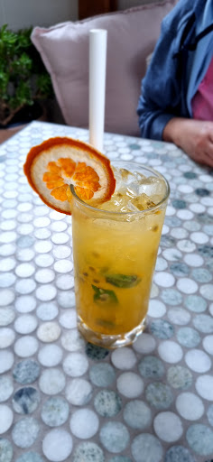 The space is rustic, wooden panelled walls and wooden tables, some with mosaic tiles. Seats are made plush with cushions and the space is decorated with bird cages and bunches upon bunches of flowers. This styling makes it feel homely and comfortable. The space is large, with a few seated spaces, so you could certainly take a group there.