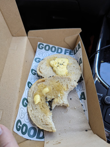 Good Fella Coffee is a super cool little coffee haunt located in Bella Vista. Itās the last place weād expect to find such a a place such as this, in the midst of a Business Park, yet brewing up some mighty fine coffee. Good Fella would not look out of place in the inner suburbs of Sydney, they are all about quality, with all food made on site and using a range of quality beans for their coffee. The cafe is quite busy, with many young punters waiting out the front for their caffeine fix. The look and age of the clientele, complete with their hip outfits and laptops, reminded me of a uni hangout or a bunch of mates talking all things coffee. For the milk coffee and cold brew they use Single O, a top Sydney's top roaster, which is a bonus for the locals, meaning they do not have to travel to far to get a quality coffee. They also have guest roasters on rotation. This weekend they had Melbourne's Wood and Co Coffee Roasters with one from Ethiopia and Kenya. The baristas know how to make a quality cup. The latte and cappuccinos were nice and smooth, with beautiful latte art. They do have batch coffee, as well as mochas, matcha and chai latte. The interior of the cafe has an industrial feel, with cement floors and bench tops, with visible aircon units and plenty of wooden bench seating facing inwards to see the baristas in action. Good fella is emitting a bunch of good vibes through their friendly staff and a chilled cozy atmosphere to with some good tunes in the background. Their menu is limited in the sense that it doesnāt host much more than bagels, toasties, pizza by the slice and some other sweet treats like cookies and cakes. That said, the range of bagels is extensive. They focus on quality, with all bagels made house; boiled and baked and you can grab them plain, or with toppings. We got a few plain to go - rye, poppyseed, blueberry and plain. We also had a filled one in store, the ābreakyā - filled with pastrami, scrambled egg, american cheese and russian dressing Being winter thereās a few new additions; the chicken soup and the amazing porridge; steel cut oats with tahini caramel, poached pear and red grapes. This was seriously tasty and super filling. Overall we were very impressed with this cafe and glad we made the trek out. We just wish it was...