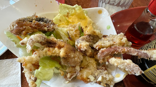 Soft shell crab was mostly batter, no meat, soggy, disgusting - couldn't eat. Salmon sashimi was OK. Karaage ramen soup tasted like made from powder, and again the chicken batter was soggy and tasted old like it was made earlier or yesterday - unappetising.