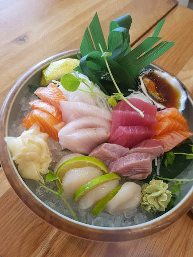 Walking past this small, fresh & light filled restaurant with a sushi train in the middle & small tables around, you might miss it. But it is definitely a place not to be missed. There is a good selection of plates if you choose to dine along the sushi train bar & just as many delicious sounding dishes from the a la carte menu which offers traditional dishes as well as more modern takes of classics. The sashimi platter was a feast for the eyes as well as the palate with the deluxe platter made up of 5 different types of fish, scallops & an oyster with ponzu sauce. It was fresh & a great testiment of what's to come. The tempura & sauce was again perfect. Lightly coated & crunchy, the mixed platter consisted of various vegetables, prawns & fish pieces. Then there is the wagyu steak with amiyaki sauce. This was the highlight as the beef was tender, juicy, rich from the fat marbled through it and the 2 accompanying sauces - one savoury & one creamy provided good contrast. It was served with a baked potato, unusual maybe but it works especially when broken up and eaten with the sour cream & accompanying 2 sauces. There is a selection of delectably looking maki rolls which I will have to try next time but did try a couple of plates of sushi from the train, which were good but not as special as the other dishes ordered. When its busy, service can be a little slow which is forgiven with great food. Its also BYO wine so bring a couple and enjoy it with the great range of delicious dishes on offer. It was such a pleasent surprise to find a restaurant of this quality & at reasonable prices. Can't...