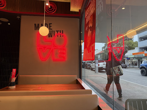 Wow just reading some of the negative reviews I’m baffled - there’s obviously some really prissy entitled people throwing shade at this place. My experience is the opposite: I’ve been coming here frequently (sometimes 3 times a week) since they opened this franchise about 18 months ago. Consistently the service is excellent and the food is great. I’ve noticed that they tend to hire really good staff - responsible workers with great attitude. I always find them to be positive and friendly in an authentic unforced way that’s true to their individual personalities. At busy times (eg weekends @ 6-7pm) the app’s ETA can be a bit optimistic, but tbh it’s the same with any online food ordering situation, there’s surge periods when they get slammed. Grow a pair and be patient, nobody died from waiting for a while for their burger! The shop itself is nicely fitted out, with the outside tables being a great way to get sun and people watch, and the booth tables next to the window being a chill place to do some laptop stuff whilst watching the world go by. The food is very consistent here, I’ve never had a bad meal here, not once. All of this is hard to pull off, so I salute...