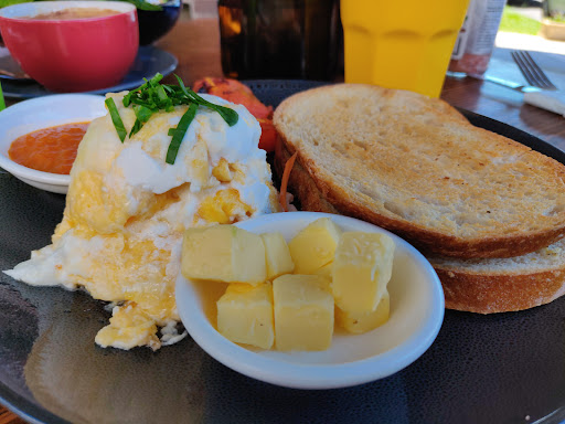 This cafe has a pretty nice menu with very traditional brekkie options along with some interesting Asian ones. But I settled on one of their specials; a scrambled eggs with goats cheese and chutney. Individually the components had strong flavours, but the combination of the savoury chutney on the toast with roasted tomatoes and scrambled eggs was well coordinated with a blissful hit of salty goat's cheese coming through. And their coffee was pretty nice and strong without being overly acidic.
