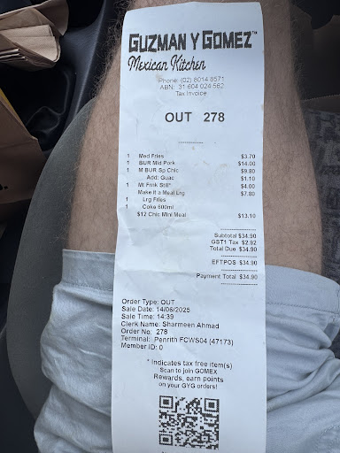 Today 14/6/2025 my partner and I decided that we would treat ourselves to some delicious gyg! Little did we expect to be disappointed with the service and the food, when ordering the two meals from this venue for one burrito being the pulled pork was meant to be spicy, the chicken to not be spicy as my partner can not handle spicy foods. Failed instructions when ordering My partner got the hot chicken burrito.!!! The order was completely mixed up, the chips were over salted I took photos to show just touching the top of the chips how much seasoning was on them, if you had salty chips before you know you canât finish them because there not enjoyable, so I headed into store to complain about the food, management fixed the order by making two fresh burritos however after the second time my order was still not correct I ended up with no guacamole my partner had got it on hers so I was very disappointed in the way todayâs lunch was and I donât think I can look into spending money at this venue again.
