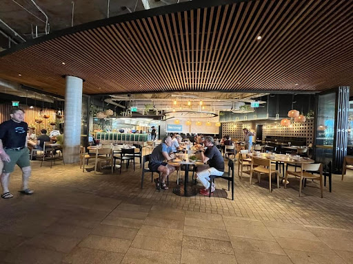 ย ย ย Read moreThe overall design results of the Harbord Diggers Club re-building looks nice from the outside. Then you drive down into the dungeon car park to try and find the closest parking space to the lift to take you up to the reception area. After asking 2 men workers down there, we parked a few spaces across from the lifts. From B1 or B2 we arrived at Club level. Saw some weird water feature with space objects in it. Low lights. At Entry no courtesy seats, so I could sit to scratch through my bag to find my membership card, so I'm finding it difficult to stand while leaning on the small counter there. I mentioned this to the friendly receptionist, she gave me a "comment form" to fill out and hand in on my way out later. We walk in, I notice every seat is either too low or too high for me to sit on. All lounge type seats are modern but very low. A lot of high bar style chairs, only suitable for able young adults etc. The tiny round seats on the Cafe style chairs are only suitable for a 5 minute eating moment. The bench seats are too wide for us oldies over 60 to swing our legs over. Luckily, the few ladies I arranged to have lunch with, pull over a few proper height wider seat chairs that were actually comfortable to sit for at least an hour to enjoy our lunch and chat with a glass of wine. Although the piped music was so loud it was difficult to hear each other talking across the table, it sounded like older 1980s jazz or bad pop music, they'd be better putting on Smooth FM, which is more subtle and relaxing. We did ask the staff to turn it down, but nothing changed. The food was average for price from DD Bistro. For $17, I had 3 skinny Beer thickly Battered Ling Fish Fillets, 1/2 plate of chips and if I didn't ask, a tiny bit of green leaf salad, with slivers of radish, 2 half cherry tomatoes, slivers of Spanish onion, a small dish of tartar, a lemon wedge. The others ordered Roast of the day, Beef with vegetables and gravy $15, they said the Beef was tough. Sav. Blanc $5.50 glass, $4. Mugachino. The Club's Decor is modern, and it suits younger people, but there is no concideration for seniors at all. It was quite windy but a sunny day, we would have had a view of the Pacific Ocean, but for the parked cars along the road on the street level and all the midday traffic buzzing past, so the view was a bit of a disappointment all up. So Forget about the view. Maybe if I go back one night to try out the Asian restaurant called Water dragon, the menu looks interesting, modern, although quite pricey for...