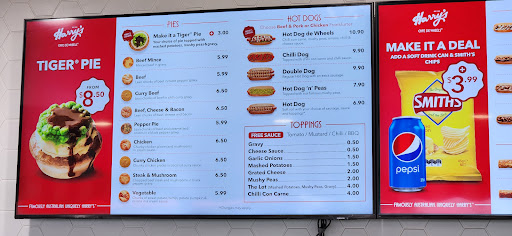 If I hadn't eaten Harry's food at other locations before, I would have thought this was rubbish food. It was very poor. The meatball dog was disgusting. The meat tasted very old. The twin chill dog was actually good. I enjoyed that one. The Tiger pie was also a huge letdown. The pie itself was very nice, but the mash and peas had just sat too long in the warmers. The mash was hard in places, and the peas were very dry and clamped together. Not fresh at all. I know this is an express location, but it only had 4 chairs to sit at. The poor young lady was run off her feet, services people at the coffee machine, serving Harry's food, and also single handedly running the BP service station too. That's not an easy job. Overall, I was excited to eat Harry's food, but this Harry's was a complete letdown. Just...