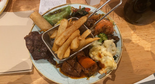 The food was terrible it is usually good or average at best. This time, it wasn't. Most of the menu consisted of potato dishes. I understand potatoes are cheap, but having four potato dishes to take up space in the hot buffet area is a little much. There was mash, wedges, curried potatoes, chaat potatoes, etc. Then we got roast beef and it was purple in the centre. This was quite disgusting.