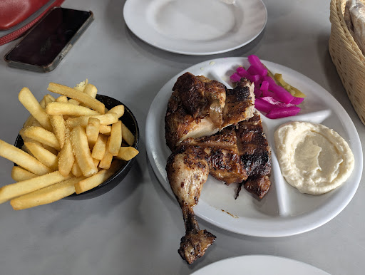Read moreFood is of okay quality. Stingy in the serving sizes. Come here often to order take away for the office. Which is why I can't exactly give only 1 star. This time popped in for a quick lunch with my partner and our 1 year old while we waited to meet people and there was no family meal on the menu for eat in so just ordered a take away family meal. We added drinks and bread and tabouli. I grabbed some serviettes we were just going to eat over the chicken packaging. I seen some small plates and thought oh this will help until someone almost smacked them out of my hand. They kept saying we will bring them out. What's your table number although we didn't have one. I picked up out order and we started unpacking it. And a worker told us to leave and we couldn't eat here. I explained we wanted to have desert after and just quickly wanted to eat and he said we had to leave. I offered to buy a coffee so we could stay and eat and they refused it.