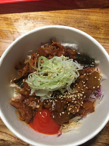 I ordered a wagyu sukiyaki beef rice bowl, and being curious, leaned over the counter wall to see how they prepared it. They withdrew a black plastic bowl with rice already inside, from a black (presumably heated) oven thing and then withdrew a clear soft plastic bag full of the toppings for the bowl, again from a black mini oven thing. They then cut the plastic bag open with scissors and dumped the whole thing onto the black plastic bowl with rice. They sprinkled some cabbage and voila, there it is.