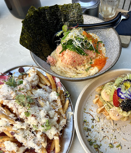 We shared dishes. Firstly we got the crab croissant, it was verrrry light on flavour (be smart, don't fall for the descriptions. It's crab, avo and egg on a croissant...not much of a flavour profile in that) Note - the mango does nothing. It's an odd addition, but it gave me respite as something to taste at least. A better alternative would be to add something pickled. Or, I dunno.... More zest in the Mayo???? Secondly we got the rice dish with egg, crab, seaweed salad, furikake and nori - so tasty. Would recommend that highly, as it legit had flavour. Lastly, we regrettably got the waffles. They were sooooo dry. The coffee finger biscuits made it taste stale... It was such an odd consistency as the waffle wasn't fresh either by the taste if it. Nothing was crispy. like cutting through a brick. We both ended up removing the biscuits entirely as they didn't add a thing to the dish at all. They were like eating chalk. Please remove... Or crumble them for a better texture at least.