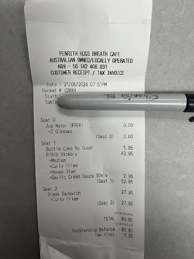 The very definition of mediocrity, hogs breath offers exactly what you would expect and it comes in huge servings. If all you want is 'normal' food (meat and three veg/salad and chips) look no further. The menu is extensive but really only offers many varieties of three different things: steak with sides, chicken with sides and burger/wrap with sides. Everything looks like it was warmed up in the microwave. It all tastes ok, it's just completely uninteresting. It baffles me why someone would pay between 35 and 40 dollars for this stuff when there is no skill or finesse to it. The staff are friendly in that American waitress sort of way (read false), which I guess is what they are going for. But they were not very good. I counted about 3 full tables in the place and as many waitresses, but our meals were slow to come out, we didn't get table water, they never came back to ask for more drinks. like everything the absolute basics were met, but nothing special. The thing I come back to is the price, mains are about $40 each, sure they are large but there are so many nice places offering interesting food at cheaper prices it just makes me scratch my head. Why wouldn't I just go to the local pub instead? Get an equally apathetic schnitzel chips and salad for a fraction of the price? I'll give it that it's family friendly in that kids can more or less run around and no one cares because they are all there calibrating some uncles birthday with the family. I'm sure that part of the appeal for the target audience is the large servings, so if the main quality you're looking for in meals is size, then hogs breath will sort you out. It's the sort of place I'll go if invited by the family, but not out of choice. Quantity over quality, basic (boring), food for when going to McDonald's is not fancy enough, but something that isn't a chain restaurant...