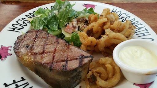The very definition of mediocrity, hogs breath offers exactly what you would expect and it comes in huge servings. If all you want is 'normal' food (meat and three veg/salad and chips) look no further. The menu is extensive but really only offers many varieties of three different things: steak with sides, chicken with sides and burger/wrap with sides. Everything looks like it was warmed up in the microwave. It all tastes ok, it's just completely uninteresting. It baffles me why someone would pay between 35 and 40 dollars for this stuff when there is no skill or finesse to it. The staff are friendly in that American waitress sort of way (read false), which I guess is what they are going for. But they were not very good. I counted about 3 full tables in the place and as many waitresses, but our meals were slow to come out, we didn't get table water, they never came back to ask for more drinks. like everything the absolute basics were met, but nothing special. The thing I come back to is the price, mains are about $40 each, sure they are large but there are so many nice places offering interesting food at cheaper prices it just makes me scratch my head. Why wouldn't I just go to the local pub instead? Get an equally apathetic schnitzel chips and salad for a fraction of the price? I'll give it that it's family friendly in that kids can more or less run around and no one cares because they are all there calibrating some uncles birthday with the family. I'm sure that part of the appeal for the target audience is the large servings, so if the main quality you're looking for in meals is size, then hogs breath will sort you out. It's the sort of place I'll go if invited by the family, but not out of choice. Quantity over quality, basic (boring), food for when going to McDonald's is not fancy enough, but something that isn't a chain restaurant...