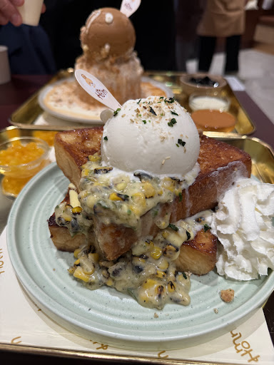 I accidentally ordered the Corn Bechamel Shokupan instead of the Pandan Coconut one because the photos on the app looked almost identical. Unfortunately, the corn and bechamel combination didnāt work at all. It was overly rich, clashing with buttery, fluffy shokupan rather than complementing it. The flavors became overwhelming quickly, and we didnāt finish it.