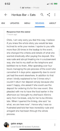 My wife mention that Hamilton didn’t seem too pleased that we cancelled at the event but I read it as being a stressful time for everyone and didn’t put any more thought into it. However when we arrived to pick up food for takeaway as a refund of the deposit was not possible which we completely understand, Hamilton was not only rude to my wife but extremely condescending. The pick up time was 5:30pm, but with some traffic and trouble finding parking we arrived at 5:48pm and the first words I heard from Hamilton was “It’s 5:50, you are late, don’t you think it’s a bit rude”. Even after my wife apologised saying that we had trouble finding parking, his response was “I even asked the chef to come in early for your order”. To top it all off, he concluded our interaction telling my wife that she was by far the most difficult customer he had to plan an event with. Again, we can understand that small businesses are under extreme pressure due to the lockdowns, but this kind of customer service, unproductive comments and unprofessionalism is unwarranted.