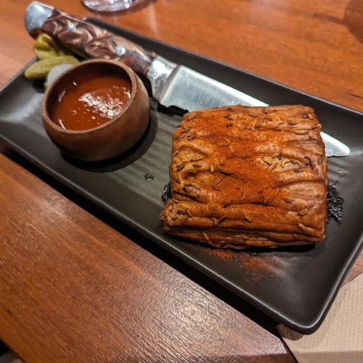 We ordered the 3 course meal set menu for 4 people consisting of an entree garlic bread, duck sausage roll, prawn roll & beef tacos. Mains were snapper, steak, lamp chops & wagyu rump, dessert were caramelised cheesecake & chocolate sâmore.