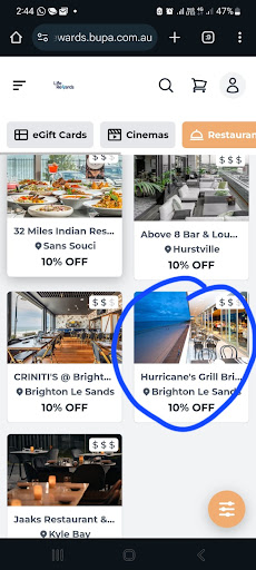 Disappointing experience at Hurricane Brighton le sands To be clear this has nothing to do with the food or the service but the way this business conduct itself regarding the issue at hand. We brought our family for a reunion lunch. We spent 350 and found that Bupa reward has 10% off for Hurricane Brighton Le Sands and bought gift card to pay for our meals. To our surprise the management advised that they have stopped accepting gift card that came from Best Restaurant even though nothing on Bupa offer website indicates the offer came from Best Restaurant. We felt extremely misled and deceived that the egift card specifically stating Hurricane Brighton was rejected by Hurricane Brighton. How did it even make sense? The management told us to go back to Best Restaurant to complain as apparently they have stopped the partnership and it wasnt their fault that their restaurant remains listed in the offer, sounds to us a very poor way of treating your customer and protecting your brand. Regardless of what happened between the business and 3rd party, at the end of the day its still the name of your brand that is showing on the offer and its part of running a business to make sure you protect your brand and avoid any negative conotation. They could pursue this separately with Best Restaurant but instead, the customer is the one asked to do the run around resolving the issue with the 3rd party. In addition, the management is aware of this ongoing issue and if its really thinking about the customer and wanted to mitigate the risk it could have posted a notice in the restaurant that it no longer accept the gift card or advise each table before ordering so customers are being informed upfront, none of these precautions were in place. To the customers this gave impression that the business took advantage of their name being on the offer list and as a result gained incoming customer business that otherwise would have gone with other options but refused to show any good faith. Im certain this is not inline with ACCC guidelines and would like to hear what efforts they have taken to try to take their name down from the list. This left a very sour taste for us at the end of what was supposed to be a relaxing lunch. It made no sense that we bought gift card specifically intended for this restaurant only to be told it was not accepted and the restaurant took no accountability of failed partnership that inflict financial loss to their customers. We ended up speding AUD 700 for the lunch, 350 paid to Hurricane Brighton and another 350 paid for Hurricane Brighton gift card that was unusable and left us out of pocket. This review is to make sure no other customer fell to this scam and mistreatment.