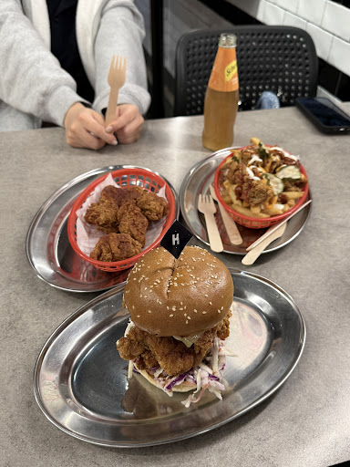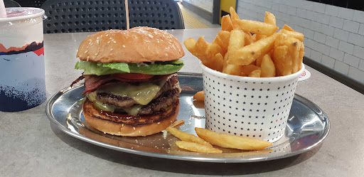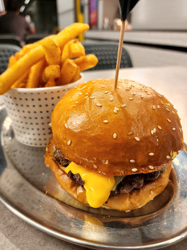 Food good, restaurant itself and service needs work. Firstly, chips are crisp, nicely fried, happy chappy. Burgers taste good, although the yellow artificially sauce that looks like nothing can stop it from oozing down the side of your burger could be cool for the instagram crowd, or off-putting for some, I'm somewhere inbetween. But now, facilities- the big entry door needs oiling and fixing, it is heavily scrapy and no idea why something so simple is an issue. The napkins were empty on my table, and when I asked for napkins the staff member went to the next table and used his gloved hands to reach into the dispenser and pull some out and so gave me napkins with sauce and whatever randomness on it, gross - I have a picture for proof but I'll refrain from posting. And despite being open they were mopping most of the store and leaving a wet floor. There's an area just outside the where staff bring out food from the kitchen where there's raised circles on the floor to help prevent slipping but that mopping led to a waitress walking normally and slipping on those mopped raised circles through no fault of her kwn and could've easily bumped her head if she hadn't grabbed on quickly, it was so near me that I'd hate to imagine that it could have been me and I might’ve not reacted so well - frankly it was dangerous. I like the later hours compared to other restaurants. Based on the food, I would've been back. But, based on the gross napkin violation and the potential hazard I really would not come back, uncared for door, basic details done wrong, it's not...