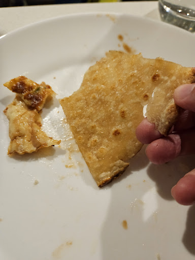Pizza was so thin, I'm not even sure if it was cooked through??? Hardly any toppings...