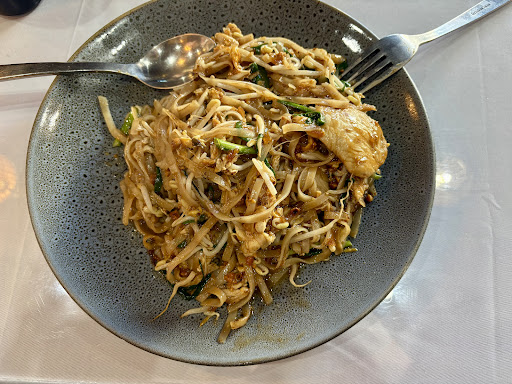 The stir-fried fish fillets with chilli and peppercorn were crispy and wok-tossed in a fragrant sauce with Thai basil, fresh chilli, and green peppercorns – definitely one of our favourites. We also had the chilli basil fried rice with chicken, which had the perfect balance of spice, aroma, and texture. To round out the meal, the chicken pad Thai was comforting, slightly sweet and tangy, with generous portions of chicken.