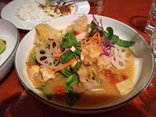 A friend of ours invited us for dinner here. Nice music and very welcoming hosts. It was a nice experience from the start. I don't usually go for a vegetarian meal but their vegetarian options sounded so good and our friend said they are very good, so I decided on full vegetarian. Lentil parcel for entree was so unusual and beautiful. I had never had anything like that before. Highly recommend! I was intrigued by the looks of it, so I forgot to take a photo! Vegetarian main had so many unusual ingredients with a variety of textures and flavours but very harmonious in the miso based sauce. I'll go back for that again!! My husband had the chicken dish and the sauce was fantastic! I want to have that one again too. They had so many interesting desserts but we were so full and we decided to share a hazelnut chocolate cake (sorry, no pic)! Umm divine!! I think this place has become my favourite restaurant in Sydney!! Highly...