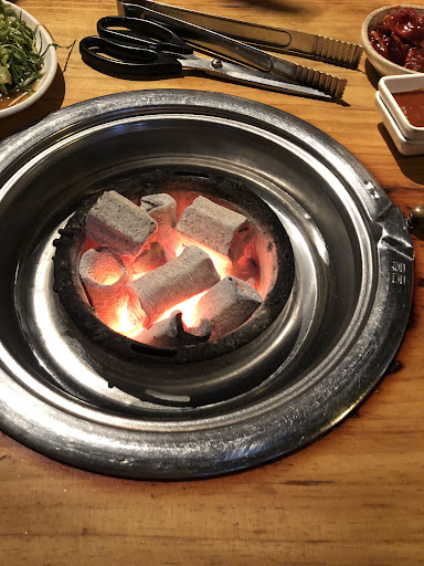 The restaurant's ambiance is typically lively and inviting, with a bustling atmosphere that adds to the overall dining experience. The menu offers a wide selection of premium meats, including beef, pork, and chicken, as well as a variety of delicious side dishes like kimchi, pickled radish, and steamed egg.