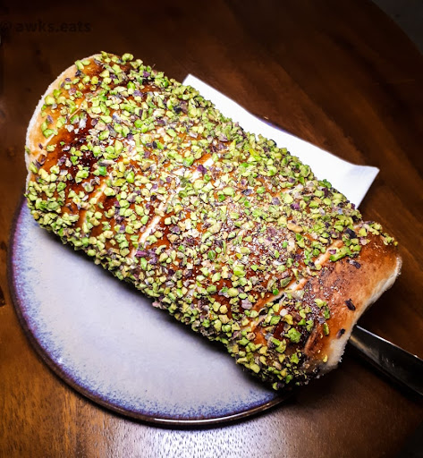 I opted for a Nutella Kurtosh with a Pistachio Coating on the outside of my particular Chimney Cake order. Lashings of Nutella has been embedded all throughout the Chimney Cake so with every bite of the Kurtosh taken, the diner will get a delicious mouthful of textures from the crispy exterior of the Kurtosh from the baking process, crunchy crushed Pistachio Nuts, the soft and fluffy inner parts of the Chimney Cake and decadent Nutella spread throughout the Chimney Cake itself.