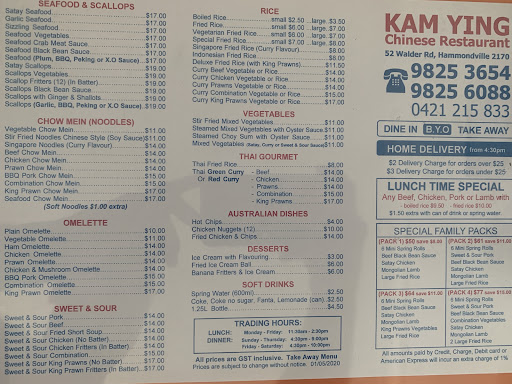 Read moreI ordered satay chicken - was OK, but too much onion - about 1/3d of all the amount and 4 small pieces of broccolini. The young girl at the front could not answer questions about food e.g. if there were vegetables in meals. If there weren't, I would get vegetables separately Beef in black been sauce - tasted off. No one could eat - thrown away. I've tried from other restaurants and never had this problem. Deep fried Squid - hardly any squid meat in it but lots of batter/dough Steamed dimsims...