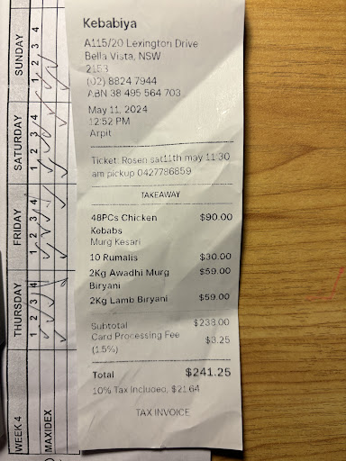 Read moreBe aware, they charge you for stuff you havent recieved and when you order again they make sure they charge you again.!! The female waiterperson serving on 12/05/23 in evening was Extremely rude and her attitude seemed she owns the joint. Even if she does she should be welcoming with customers. You ruined our dinner Miss!!!!II requested her other female colleagues to make sure she didn't attend our table again!have attached my invoice. Between 7 adults and 5 kids under 12 and a 2 year old we spent $492. The first two waiter persons were friendly and attended well. There was thou a third female staff with glasses who seemed to have an attitude and was quite rude.