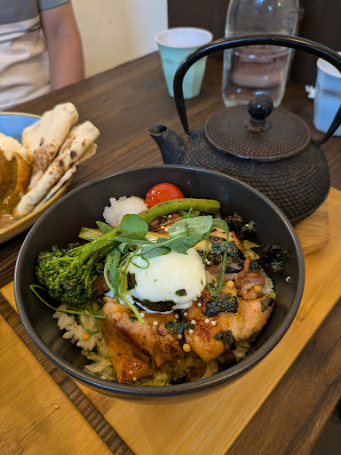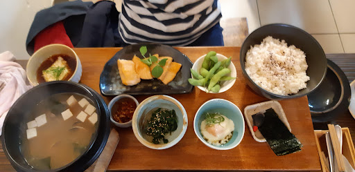 My wife and I visited for a mid morning breakfast on Friday morning. We were lucky to get a table. It is obviously a popular café. We ordered Soy Lattes ($4.50 each) to start. My wife ordered the Big Japanese Breakfast ($37.50), consisting of grilled miso flavoured salmon, sesame seasoned spinach, Japanese boiled egg (ontama), bowl of edamame, bowl of tofu, seaweed (nori) served with a bowl of rice and a bowl of miso soup. The large meal came on a large wooden server. She enjoyed it immensely. I ordered the Veggie Breakfast ($22.00) another big meal, consisting of scrambled eggs on two slices of buttered, sourdough toast, a bowl of cooked tomatoes, half an avocado, a bowl of mixed salad including lettuce, carrot, baby tomatoes and cucumber, as well as some sautéed spinach and sautéed mushrooms added to the main dish and a large hash brown. I enjoyed it as well. I drank another delicious well made, Soy Latte to finish. Staff were welcoming, warm and friendly. There are toilets on the premises. Once you get a table you can relax in peaceful surroundings. Breakfast at this compact café is highly...