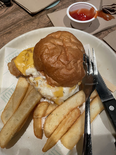 Read moreAre you hankering for a mid-afternoon meal? Do you like upbeat chill music, good food and entertaining people watching opportunities? Then this is the place for you! Staff are great, attentive but give you space, and the food is yum. Really yum. The crispy chicken burger is hella crispy, and yet perfectly juicy and succulent, with sweet spicy salty fries to match. The brisket burger is arguably better because who doesn’t love 18hr slow cooked beef brisket with fresh slaw, but that may be a biased opinion. I don’t care. The Margherita has buffalo mozzarella AND cherry tomatoes, and the crusts are well worth eating. Beers are cold and delicious. Cocktails are made to perfection. Men in suits and women in also suits walk past you for unintended visual stimulation. This place is great....