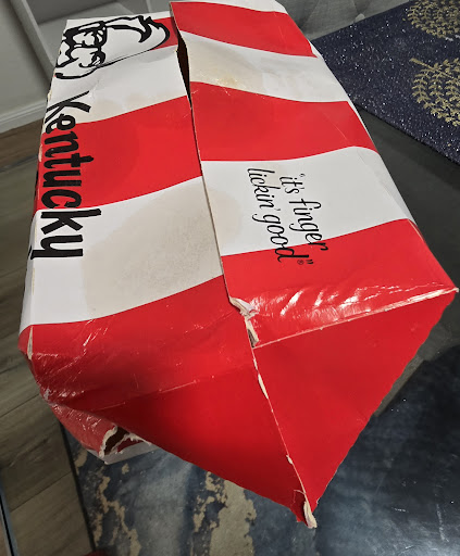 However, after that call, I opened the rest of the food. As soon as I picked up one of the boxes, it ripped open at the bottom. The box was extremely soggy and oily, almost as if it had already been used, and it did not feel like a fresh, new box. On top of that, one of the pieces of chicken was missing its coating/skin, with the white flesh showing. I have attached photos of both the box and the chicken to show the poor condition.