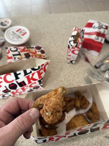Read moreI understand that from time to time you get the occasional very small piece of chicken in your meal, but when your âgiant feastâ is more than 70% of wings and drumsticks that look like they came from a budgie, then this is totally unacceptable. This is the first time I had tried KFC Greenacre. I usually use Punchbowl but didnât this time because I was driving thru Greenacre. I try and avoid Riverwood. The attached photo is one of the wings in front of the box it came in. It looks bigger in the photo than what it actually was, I guess a photo did it justice in this instance. The chip boxes are covered in gravy as the gravy containers were thrown in the bag without the lids on properly. My wife and daughter had already taken a few of the tiny sized drumsticks and wings out. Both complained. My undersized wing was dry and smelt like cat urine ( I have never sampled cat urine, I can only assume it would have a similar bitter taste). Needless to say there was no KFC left over from tonightâs meal. Dear manager, if you want to treat your customers like this at least throw in some extra pieces, otherwise you are just taking the piss. The beauty of google is to warn others of this practice. I personally will not be...