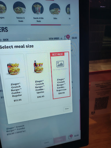 Read moreBrother where do I begin. We purchased a two burger combo for the exuberant price of 26 big ones. She mentioned she had a limited supply of food left but would still make it worth our while with substitutions. What we received simply appalled us. Instead of that crispy juice zinger burger what we received was a joke. In between the buns we got a measly filet piece and in the other burger two small pieces off hot and crispy chicken. Furthermore in our sliders we received the most minute piece of hot n crispy chicken rather than that finger lickin tender. This experience has ruined kfc for me, I am appalled by service of this location as other branches when substituting often provide much more reasonable and quality options. The fact we had to pay this much for this atrocious food simply appalled me. Will never be back and I hope you all look elsewhere to meet your...