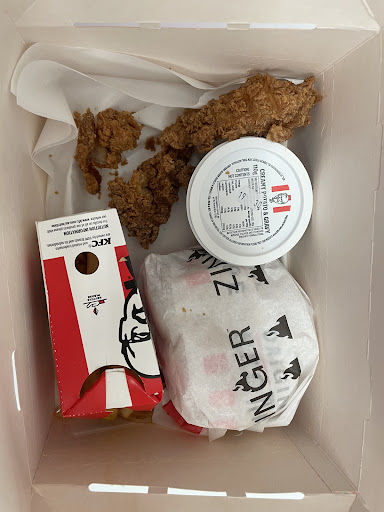 Over 30mins wait for a Zinger box...2 people in front of us ordering, store 1 sitting table. First out of chips and than wings. People in front of us ordered ate and left whilst we waited for ours. Alot came after us people ordered and left. This kfc wasn't busy so we thought inside to sit, shouldn't be long right? But it must have been drive through large orders at the same time as my 1 meal box. But they couldn't spare a few chips or wings for a small order? The longer we waited the more things run out. Alot of people around us was eating and leaving. Was very confusing. Our order wasn't important? How they get theirs so fast and left or sitting down to eat so quickly? Or just our order that's not being looked after?