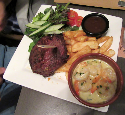 Food as usual was of the highest quality, and this is where this place really excels. I ordered a margherita pizza, the twins choose a prawn salad and a steak, my wife the surf and turf, and our interstate daughter went for a fresh and wholesome chicken salad. Every meal was a winner. My pizza had a thin crispy base, topped with lashings of fresh mozzarella, ripe cherry tomatoes and sprinkled with thin slices of basil leaves. I donāt usually finish a whole pizza on my own, but this beauty was irresistible and with only a little help from my dining companions it was all gone pretty quickly. The steaks were tender and tasty and my wife loved her surf and turf, with fresh succulent prawns making the perfect accompaniment to the well cooked steak.