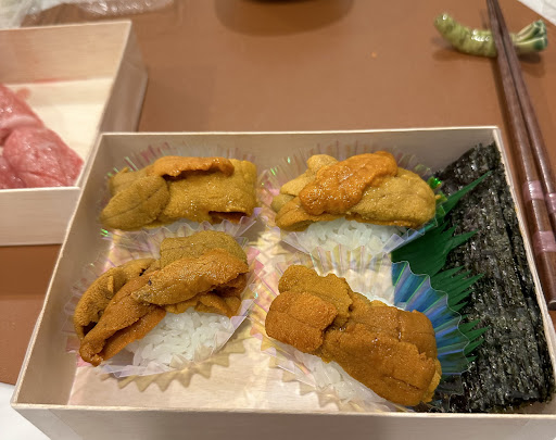 Sea urchins ( I’m really sorry for leaving this review, with out the urchins and oysters, I would give you guys 5/5) were bitter, sour, with a extremely strong chemical taste than the salmon roe. This is fairly surprising, because me and my friend visited Komatsu around late September, the sea urchins were the best. But this time, the sea urchins were not buttery, creamy, umami, slightly sweet. I rate the sea urchins 2/10 :(