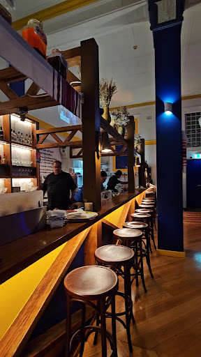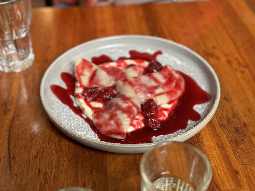 Read moreIf you would like to try something different and have some fun with your friends - yes, go to Kyiv Social. Excellent location, nice atmosphere, good drinks. And I was told that the food is not traditional Ukrainian so I didn't have very high expectations, was not hoping to have a "taste of home food". But when my friend opened menu in front of me with the clear message on the very first page "we are serving traditional and authentic Ukrainian food..." - I was a little bit disappointed. I don't mind fusion, I don't mind personal vision of the Chef's food, but please don't call it traditional Ukrainian food. In one or you replies you were saying that you are using authentic Ukrainian recipes which were given to you by the staff members. Well, I am just wondering who's grandma was cooking toast with salo on the soft French cream fraiche? By the way, the toast itself was completely burned. It was wrong... One more thing. Kyiv Social says they donate some money to train the new arrival refugees as a staff. I didn't see the staff members had any training as a waiter. They didn't have any answers to any of my questions. It was just solid "I don't know" to my questions about the size of the dish or about the ingredients. I believe that well trained staff must describe the dish to me and know the taste. But vareniki with cherries were beautiful, great desert, thank you. I would definitely...