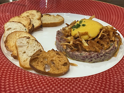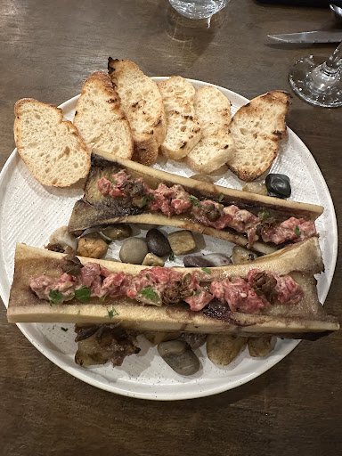 For our entree, we ordered the bone marrow with steak tartare, which was the highlight of the meal - rich, well-executed, and genuinely enjoyable.