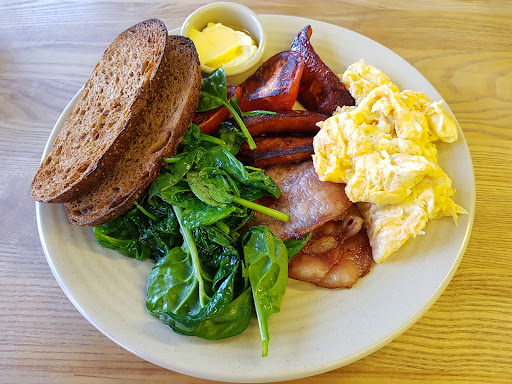 Read moreSmall cafe, perfect for a quick breakfast if you are staying at the Travelodge or nearby. Popular with the taxi and shuttle drives along with the office workers. It’s under the Travelodge but not part of the Travelodge. Has seating outside, inside and upstairs which offers up a bit more quieter feel. Coffee was perfect, strong and hot. My almond croissant for $5 was quite possibly the largest croissant I ever had. The egg and bacon roll...