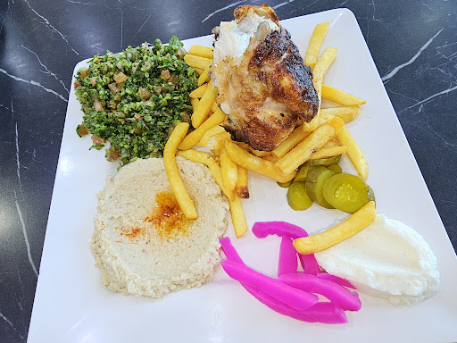 Read moreRelaxed setting, excellent customer service and very good food. I ordered the 1/4 chicken, chips, tabouleh and hummus plate but asked to swap the hummus for baba ghanoush, the server happily obliged with no additional cost.