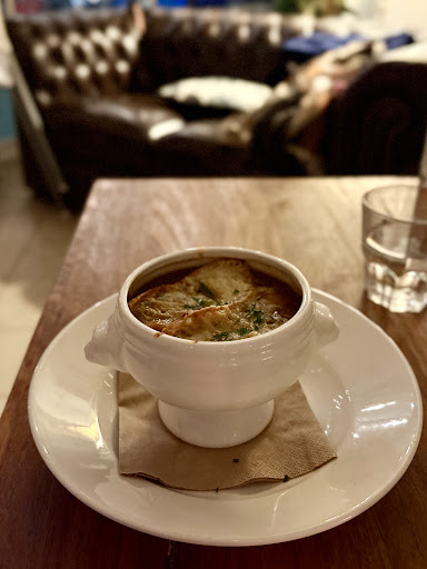 The menu offered A La Carte options as well as two or three-course set dinners. I chose the French onion soup and the duck confit. Both dishes were enjoyable—the soup was rich and flavorful, and while the duck may have been slightly overcooked, it was still very tasty.