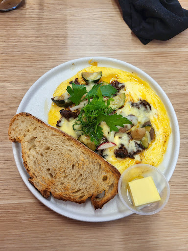 Read moreFood: Food was warm when served and prices are mostly reasonable. Pleased to see many vegetarian options. Wish this cafe was more allergy friendly as one family member had an allergic reaction after eating a vegan burger with no mayo (most likely the bread contained milk?). The extras (mushrooms, avocado) cost $4 - very overpriced.