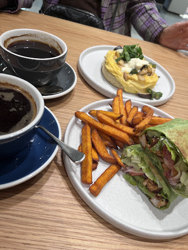 Very disappointing. I have previously enjoyed the food here but my trip today was just a real disappointment. The cafe allowed someone to play videos on full volume for more than half an hour. The chair under one man broke and the staff didn't really acknowledge him, just got him a new chair. The family ended up moving tables as the table was next to the service station and they were constantly knocked by staff and other patrons. For us the coffees and cake for our our were forgotten and we had chase them. The coffee was milk was extremely hot like it was made in a rush. My "truffle" mushroom bruchetta did not taste like it had truffle oil. The mushrooms were fairly plain and the chilli overwhelmed the dish. The schnitzel wrap was fine. The girl on the till also asked me is that all after every item, a habit I can't stand as it makes it hard to remember my order and makes me feel like I'm ordering too much when I'm just trying to remember the whole tables order.