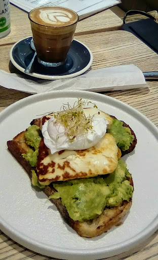 Visited this cafe today for lunch, I quite liked their menu, reading it for a small amount of time I was won over by the salmon/avocado brushetta. I was standing at the counter for some time waiting to be served, the girl walked passed a few times but did not acknowledge me, service has gone down hill at this cafe.