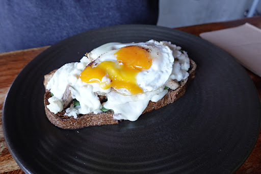 The Open Melt ($17) here is fancier than most, featuring 10-hour braised pork belly that tastes of brown sugar, cinnamon and star anise. The thinly sliced pig is very well rendered, eating well against spinach, bland mozzarella cheese, house onion pickles and a runny-yolked fried egg.