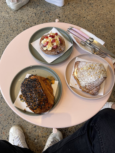 Random other remarks. their coffee is pretty decent, but the main star really is these pastries. The setting and ambience are nice with a clean and modern very gramable look. Muted pink...