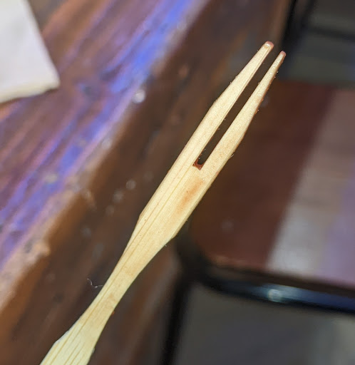 Using the flat end of the fork, I scrapped off the chocolate from the bottom of the box. The box doesn't go soggy so take your time enjoy.