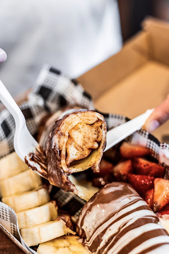 (Pictured) Nutella deluxe with strawberries, nuts drizzled in white chocolate - $17 Honey walnut - $14